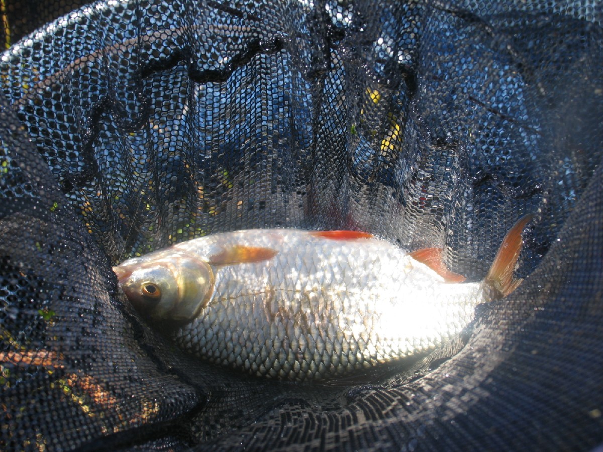 Es dauerte keine 2 Minuten und der erste Fisch ein kleines Rotauge hing am Harken. Gut dachte ich. Nach insgesamt 10 Minuten konnte ich 3 kleine Rotaugen in den Setzkesscher werfen.